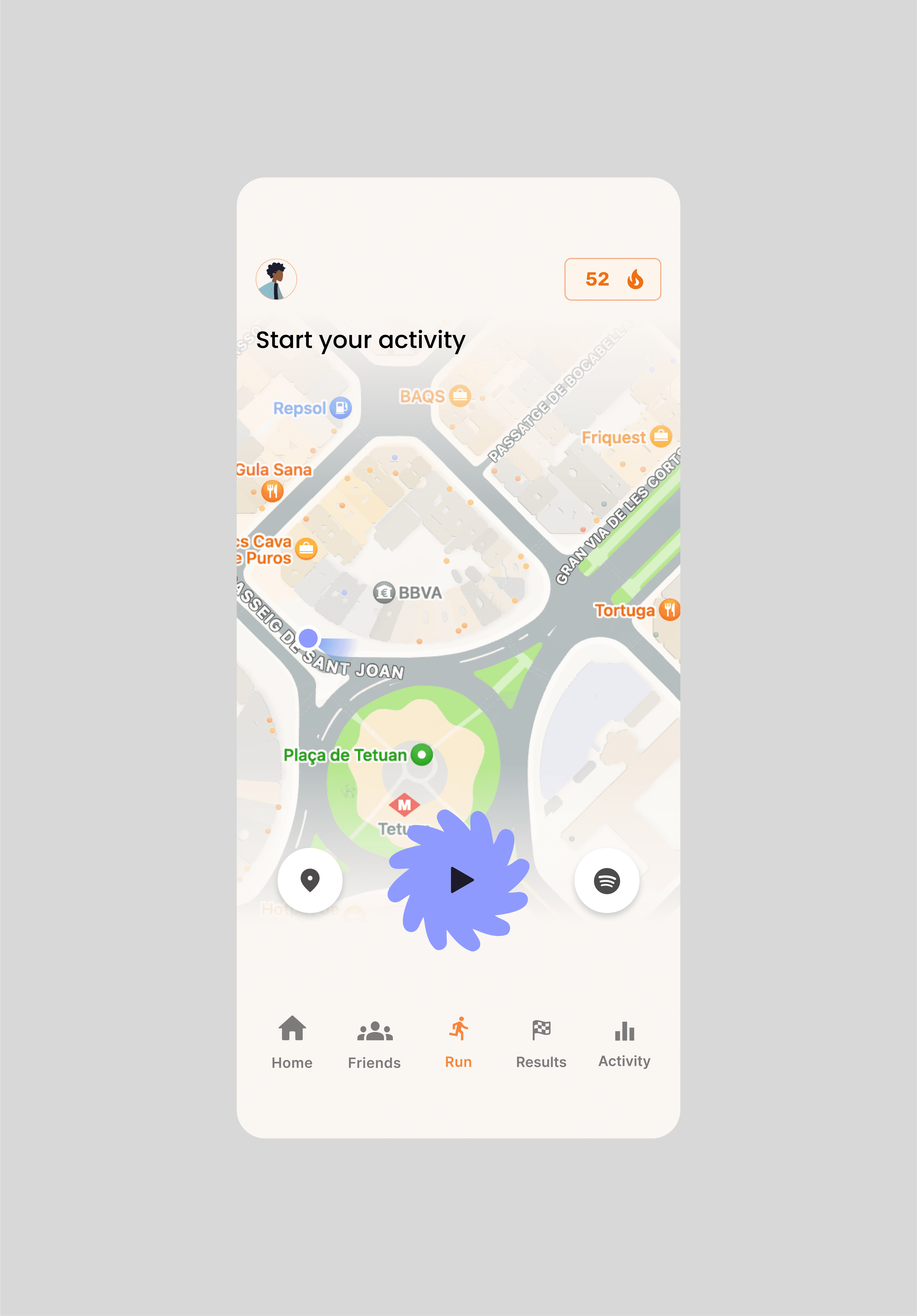 An intuitive interface was designed to give users easy access to the app's features, such as the league system, weekly competitions, and motivation streak tracking. Special attention was given to how interaction with the mascot could serve as a stimulus to go running, using humorous and sometimes sarcastic messages to motivate the user in an entertaining way.